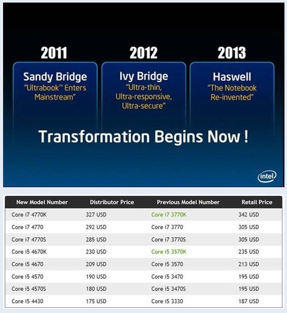 英特尔Haswell处理器售价曝光 比上一代更便宜