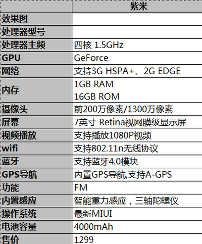 小米紫米平板曝光 四核7英寸 售价1299元