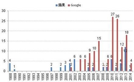 Helan 2014-02-28 09:20苹果(Apple)和Google自创立以来至今的购并纪录,发现苹果于2013年开始积极发动购并,1年内购并了12家企业,较过往每年最多购并6家企业的数目多出一倍。