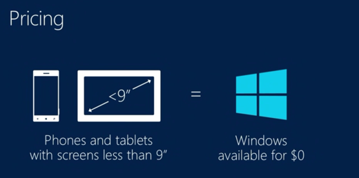 微软:手机/小型平板Windows全面免费授权