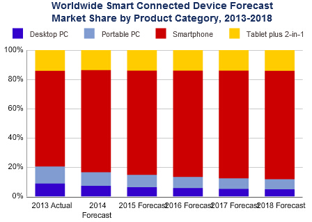 IDC预测2018年智能手机出货量是PC的六倍