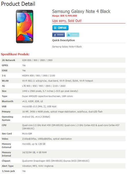 三星GALAXY Note4还将支持LTE/WCDMA/GSM网络,拥有蓝牙技术以及USB3.0接口等功能。至于大家关心的售价方面,这家印度尼西亚电商网站给出的报价为9499000印度尼西亚盾,约合人民币5000元左右,似乎与人们预期的售价比较趋于一致,并且还有消息称该零售商可能获得了来自三星的一些初步资料,所以应该具有一定的可信度。
