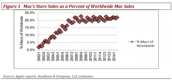 Helan 2014-08-21 09:28Needham & Co. 公司分析师 Charlie Wolf 本周三发表投资者报告,报告中提到虽然最近几个季度 Apple Store 的营收出现了下滑,但苹果的 Apple Store 对于吸引 Windows 用户非常重要,帮助进一步推进 Mac 销售。2001年时,苹果还没有足够的产品填满占地面积6000平方英尺的 Apple Store,不过现在 Apple Store 中却有各种各样热销的产品。