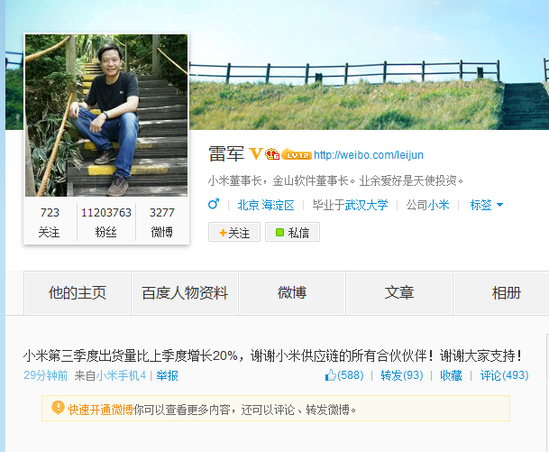 Helan 2014-10-08 11:42雷军今日宣称,小米第三季度出货量比上季度增长20%。