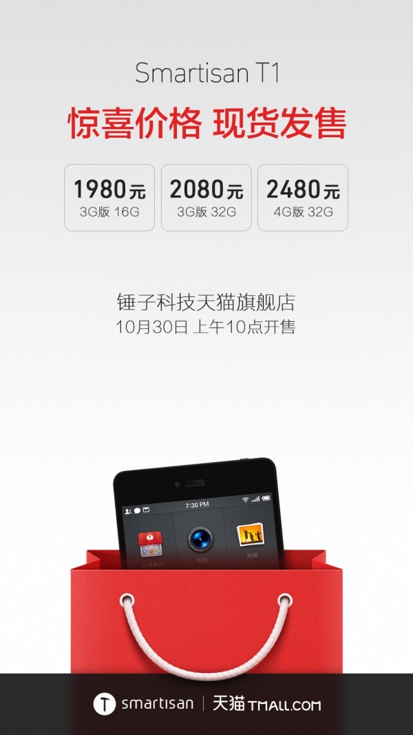 而对于10月18日0点之前购买Smartisan T1的用户,锤子科技表示将在Smartisan T2上市时提供800元的优惠,或者提供500元的锤子科技官网商城现金券,可购买商城内的数码周边产品及手机配件,应该没有使用条件限制。