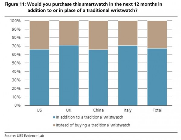 Helan 2014-12-02 08:52UBS 分析师 Steven Milunovich 进行的调查显示,Apple Watch 明年将会获得成功。这次调查有4000位消费者参与,UBS 发现,有10%的消费者表示,在未来的12个月内,很有可能购买智能腕表。将相同的百分率应用在 iPhone 用户中,UBS 认为 Apple Watch 发售9个月后,销量会达到2400万。