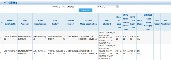 而早在上个月的时候,摩托罗拉两款新机XT1079和XT1085就现身3C质量认证中心,但尚未查询到入网许可证。这意味着摩托罗拉未来至少会在国内发布两款新机,一款是Moto X,另一款则是New Moto X。