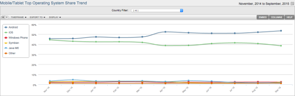 9月移动市场:iOS大幅下滑、Android增长明显