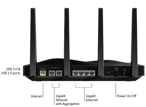 Nighthawk X8还提供了6个千兆以太网接口,其中两个更是可以聚合以进一步提升网络吞吐性能。