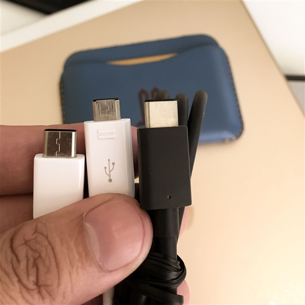 另外一款Micro USB数据线可能是适配Gear VR,至于黑色的那款,则来自Lumia 950,做对比之用。
