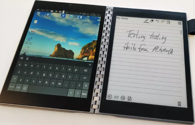 helen 2018-06-07 10:39英特尔在双屏PC上工作了两年,本周开始在Computex上展示一些设计概念。英特尔已经开发了双显示器和电子纸显示器(EPD)的原型设备。 EPD显示器的原型设备看起来更像是一个Moleskine笔记本电脑,而不是传统的PC,中间有一个铰链用于将两个屏幕关闭。