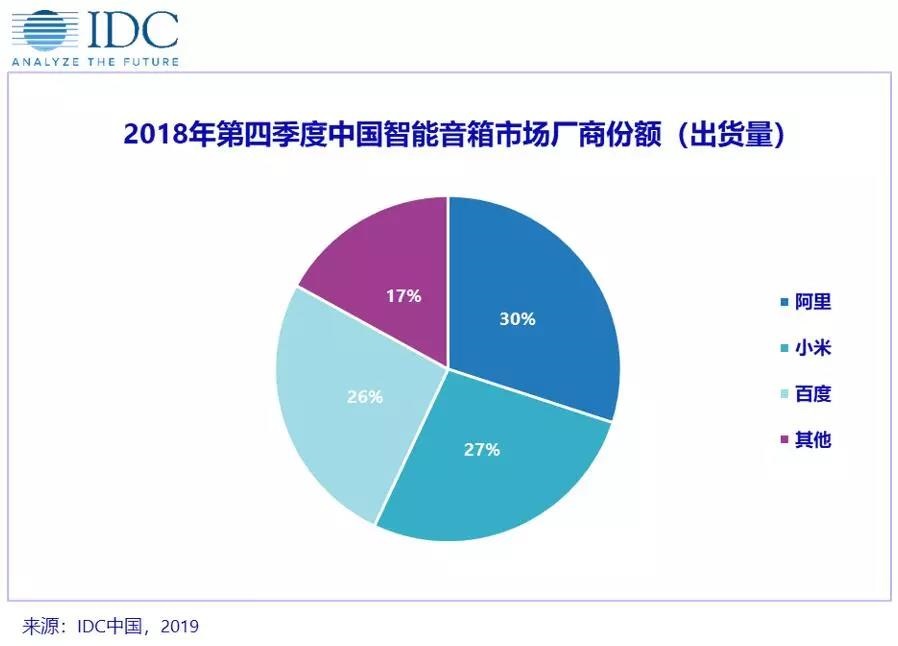 从市场竞争来看,中国智能家居设备市场玩家众多,头部厂商优势明显。《IDC中国智能家居设备市场季度跟踪报告》显示,2018年第四季度中国智能家居设备出货量前五位的厂商占有近半数的市场份额。其中小米依靠其完善的生态链成为最大玩家;海尔和美的作为传统家电智能化的领头羊分列第二、三位;阿里凭借自身渠道优势通过智能音箱和智能电视盒子两个主要产品位列第四;百度入局较晚,但在DuerOS语音平台的支持下通过智能音箱这一爆款产品,仅三个季度便跻身前五。