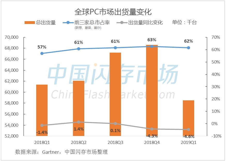 2019年Q1全球PC出货同比下滑4.6%,受处理器缺货影响明显