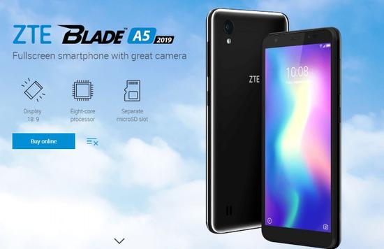 Blade A5配备2GB+16GB存储配置,支持microSD卡插槽扩展。采用1300万后置单摄,电池容量为2600mAh。运行Android 9.0系统。提供蓝色和黑色两种配色,在俄罗斯售价为6490卢布(约合人民币696元)。