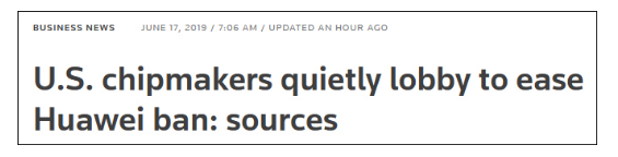 Olivia 2019-06-17 11:10自5月15日美国商务部以美国国家安全为由,将华为加入“实体清单”以来,美国供应商相继切断与华为的联系,未经批准不得向华为出售产品。此次禁令不仅对华为影响大,而且对美国半导体公司来说影响也很大,甚至波及到整个产业链。在6月17日传出美国多家半导体供应商向美国政府施压,要求放宽禁令。