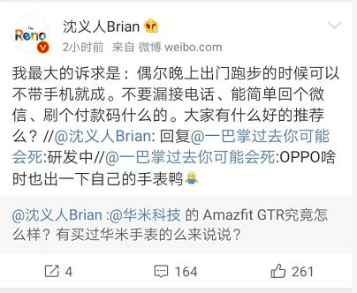 Olivia 2019-07-18 18:45OPPO副总裁沈义人在微博回复网友提问时表示,OPPO正在研发智能手表。