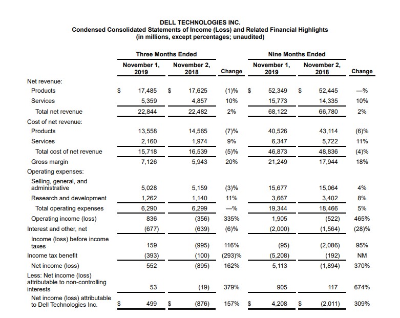 AVA 2019-11-27 10:23美东时间11月26日美股盘后,戴尔公布2020财年第三季度财报,财报显示,戴尔本季度营收228亿美元,同比增长2%。
