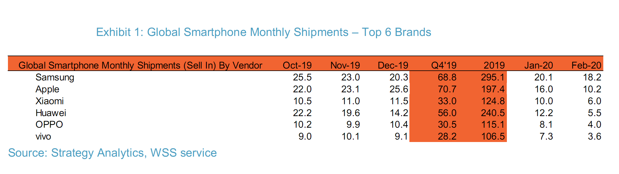 苹果以1020万部继续排名第二,同比减少27%。富士康复工迟缓,对于iPhone的生产和出货影响严重,预计3月底会有所改善,但不太可能“满血复活”。
