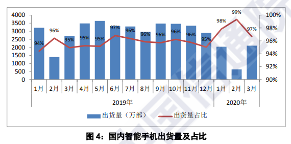 Olivia 2020-04-14 09:26国内手机市场总体出货量