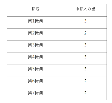 本项目划分为7个标包,各标包中标人数量及份额分配比例如下: