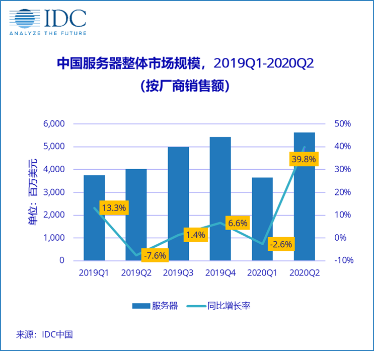 IDC:2020年上半年中国服务器市场出货149.89万台,同比增长8.6%